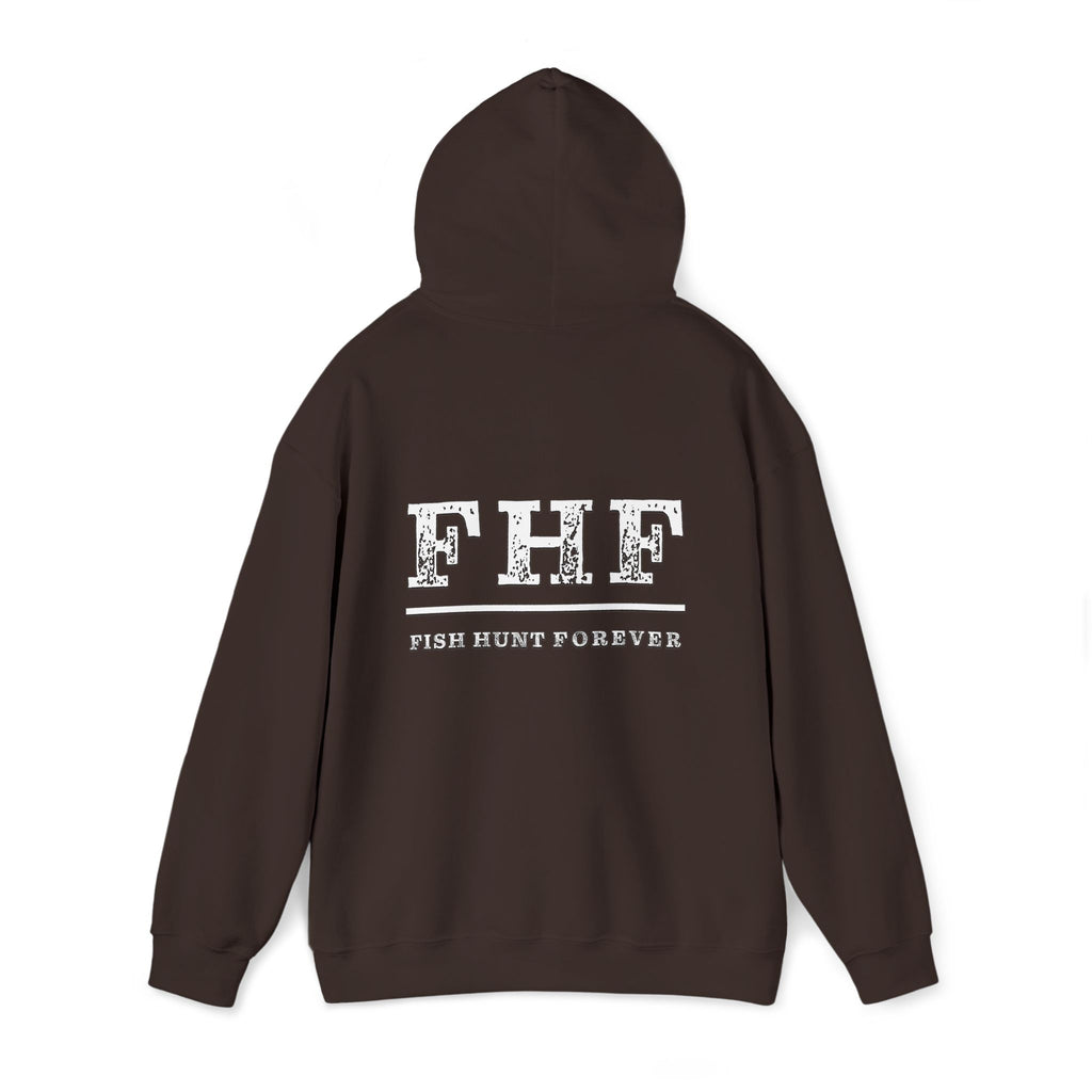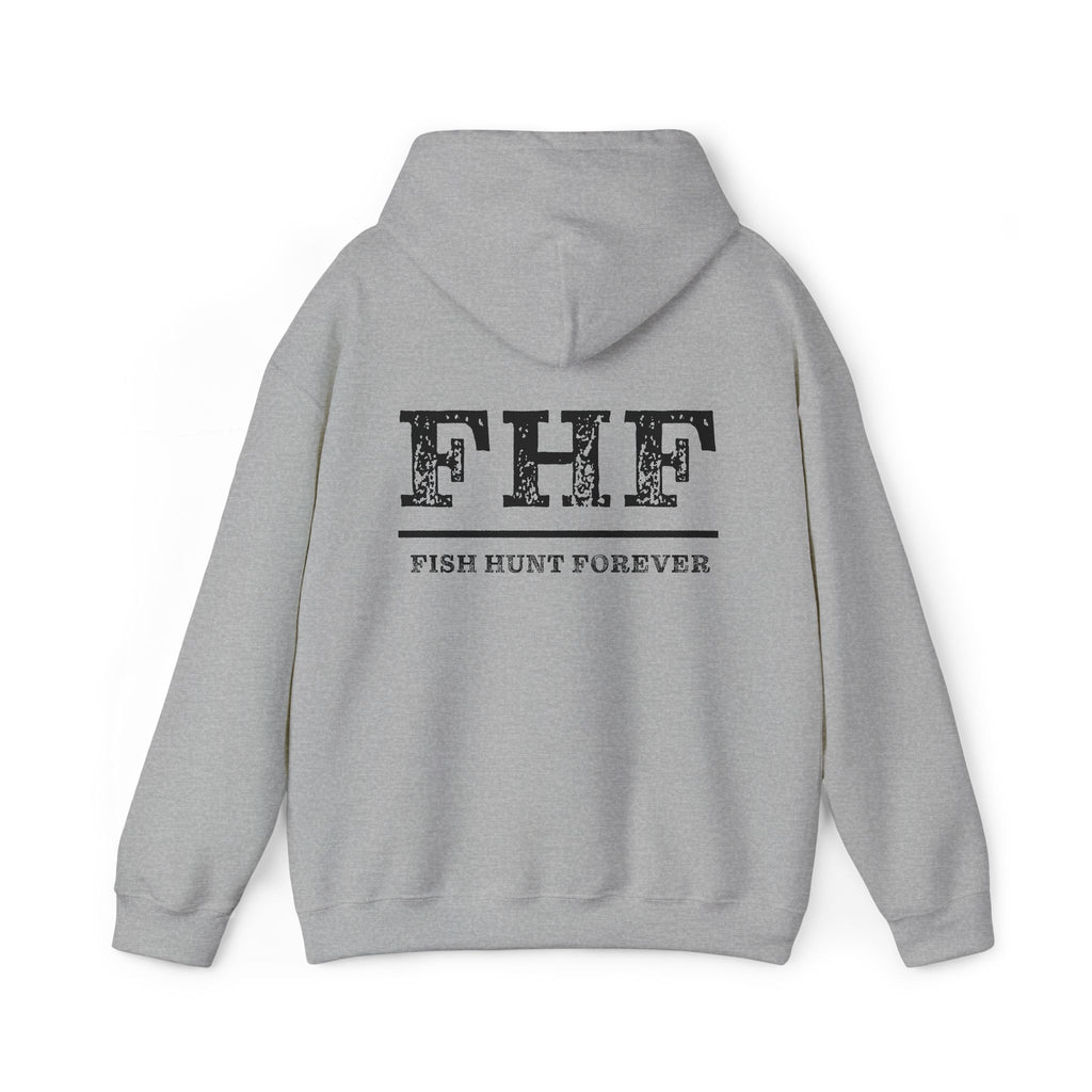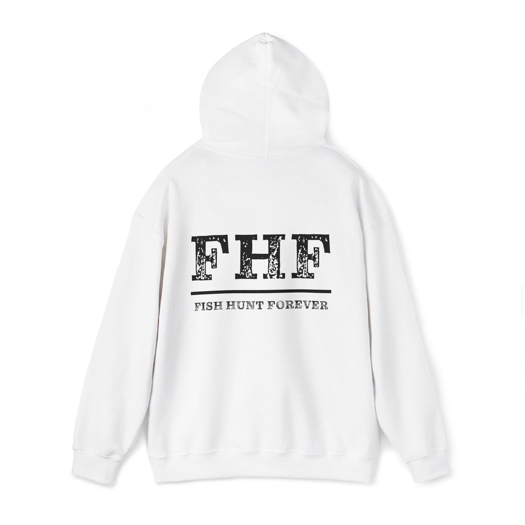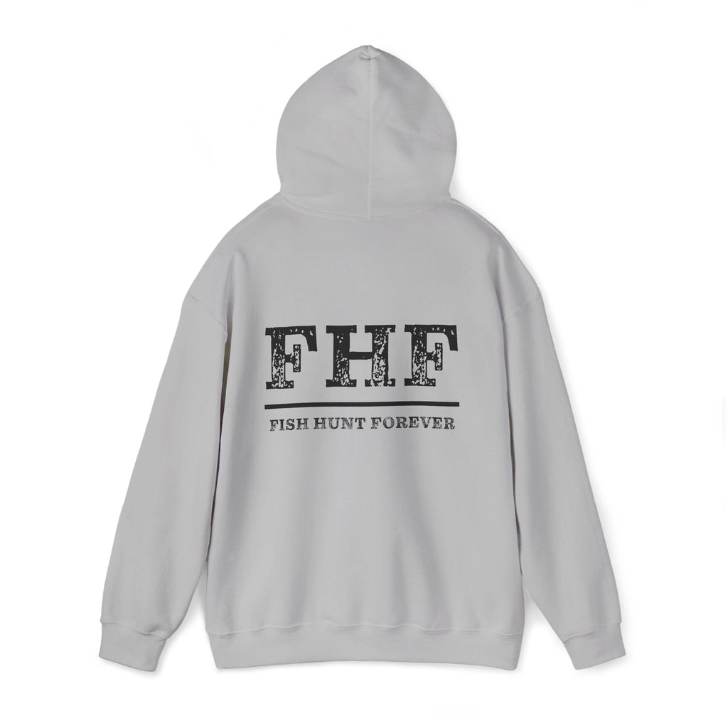 Soft, roomy, and made for mornings on the water or slow afternoons by the pier. This hoodie wears like a favorite — thick enough to hold in heat on misty mornings, soft against skin, and cut in a classic fit that layers easily over tees. The front bears a bold, no-nonsense FLAG! graphic above a small dock illustration; the back reads FHF with a subtle fish-and-hook texture and the tagline Fish Hunt Forever beneath. It’s the kind of hoodie anglers reach for when coffee is steaming in a thermos and the tide is just right. Durable DTF sleeve and wrist prints and optional embroidery give the design a rugged, lived-in feel that stands up to repeated outings. Practical touches — a color-matched drawcord, double-lined hood, and a kangaroo pouch pocket — keep hands warm and essentials close. Finished with OEKO-TEX certified dyes and responsibly sourced cotton, this sweatshirt blends utility with quiet, outdoorsy style.